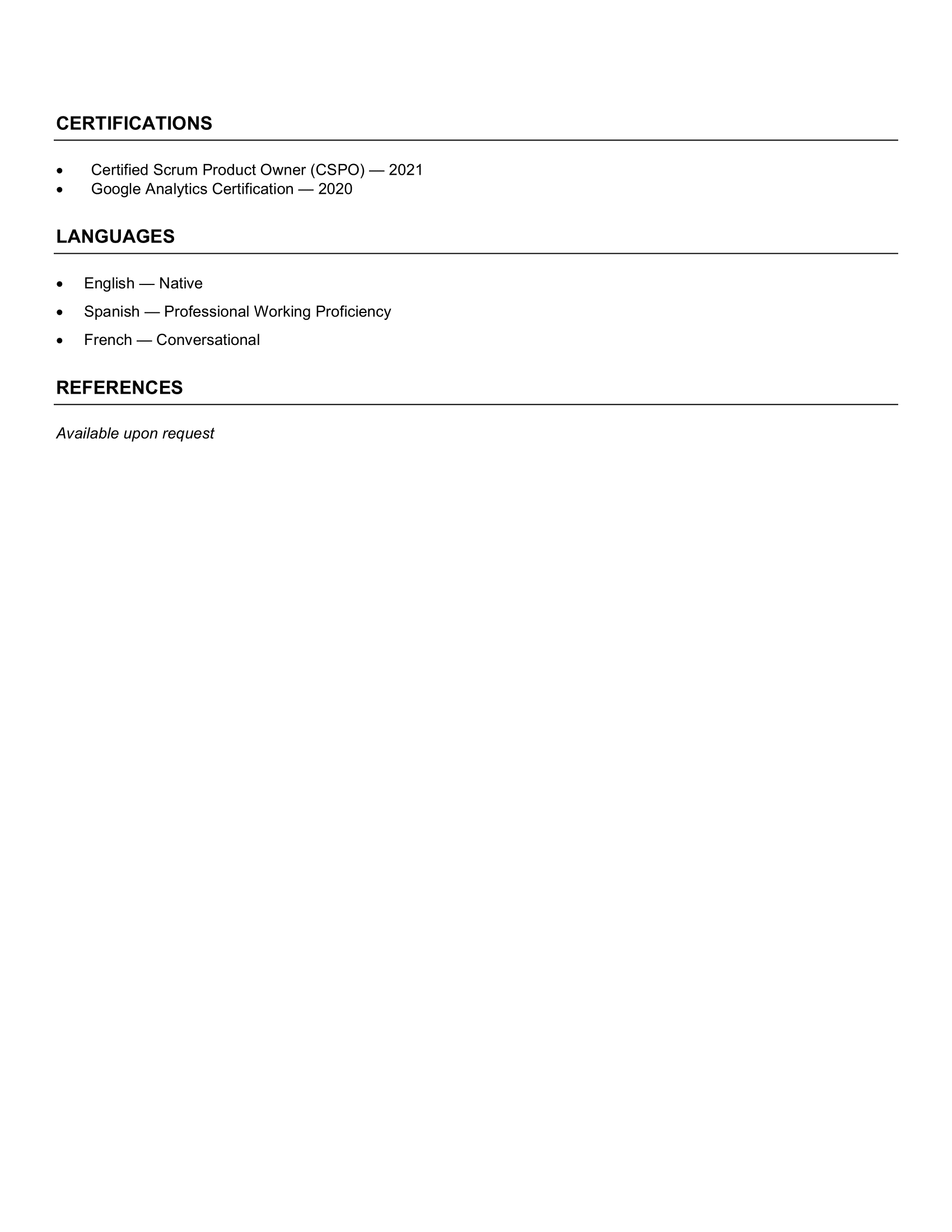 Text hierarchy remains predictable, which helps applicant tracking systems identify roles, dates, and accomplishments correctly. Moreover, the spacing adapts naturally as you add or remove content. This flexibility allows you to tailor your resume for different roles without reworking the structure.