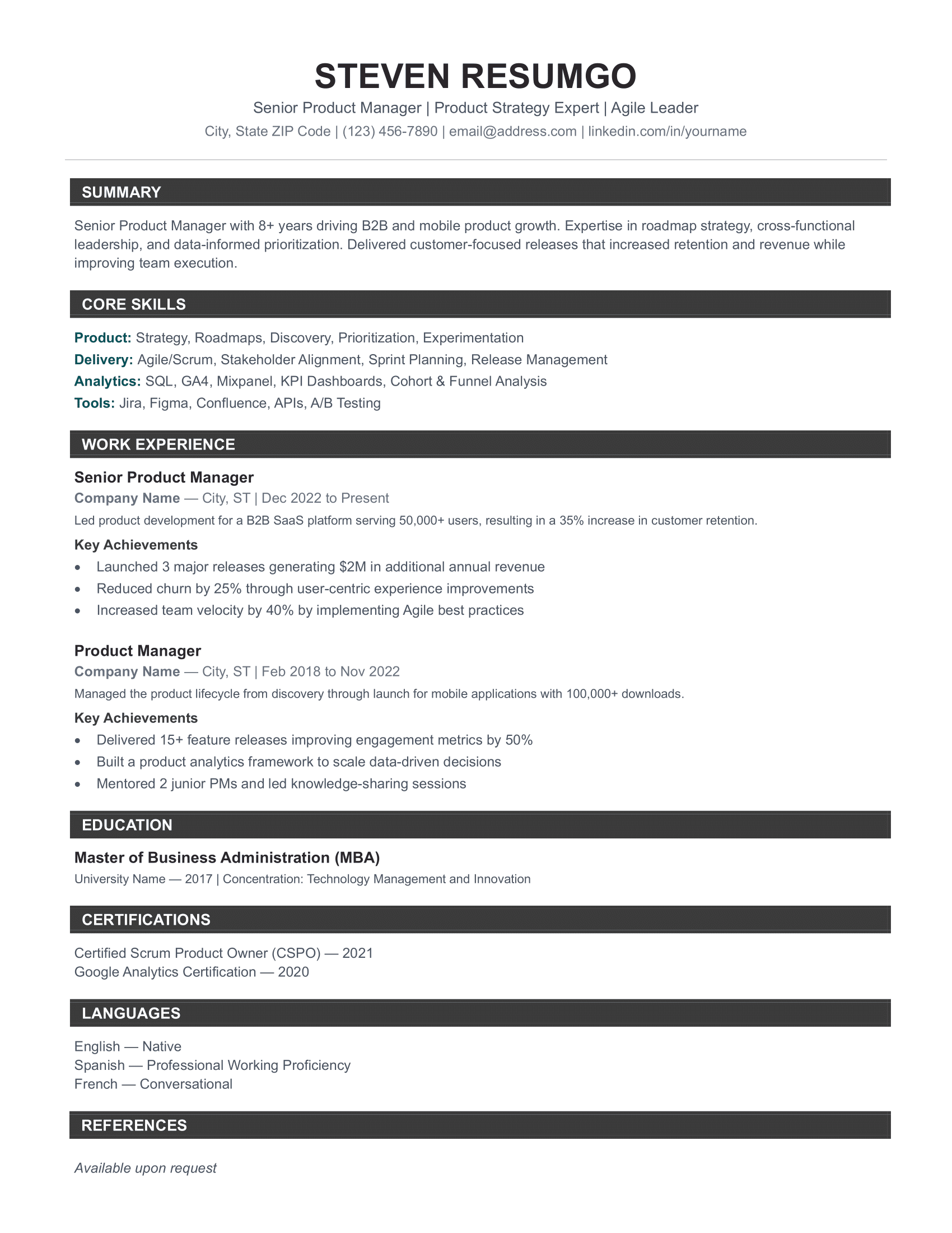 Because the layout avoids icons, graphics, and photos, it remains universally compatible with ATS software. This approach ensures consistent performance across job portals and company systems. Therefore, you can confidently submit this resume to a wide range of employers.