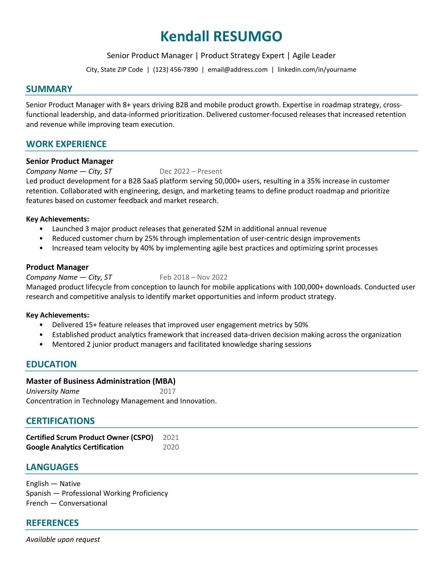 This format keeps headings simple and spacing predictable. Moreover, it avoids design elements that can interfere with text parsing. Consequently, it works well for corporate portals and direct email submissions.