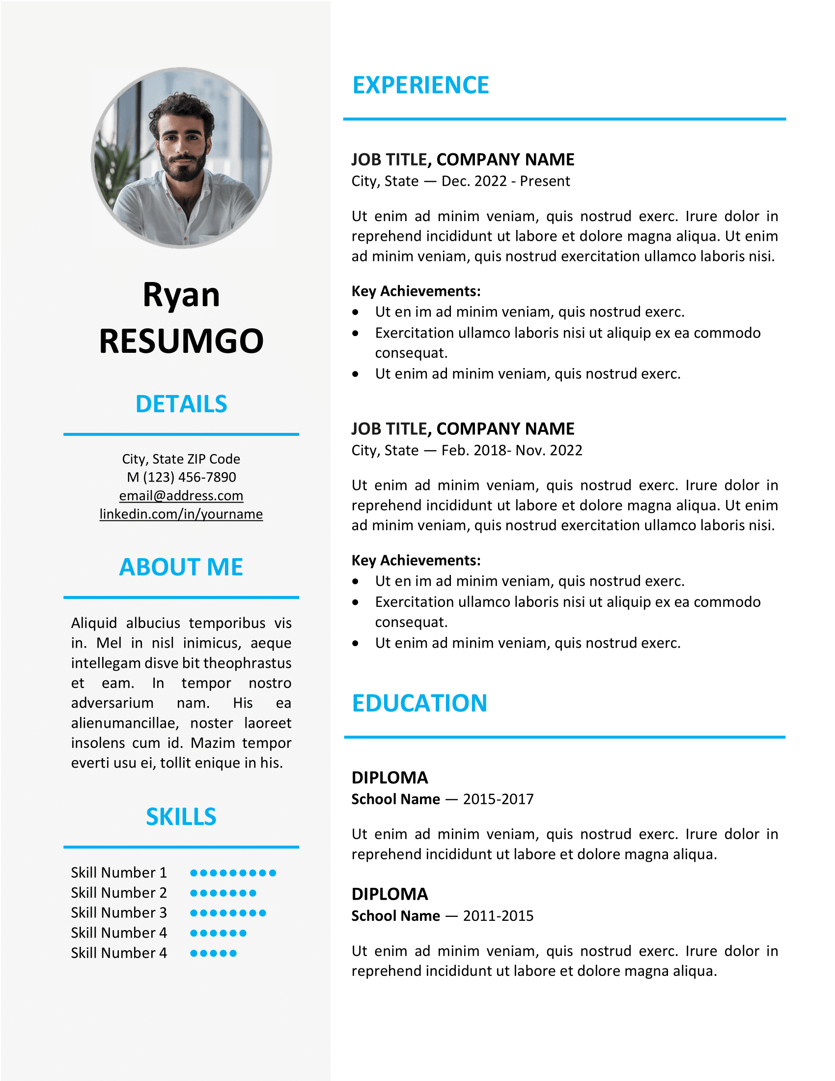 Editing is straightforward: download, open the file in Microsoft Word or Google Docs, and start customizing with your details. Once finalized, you can easily export your resume to PDF for email or printing.