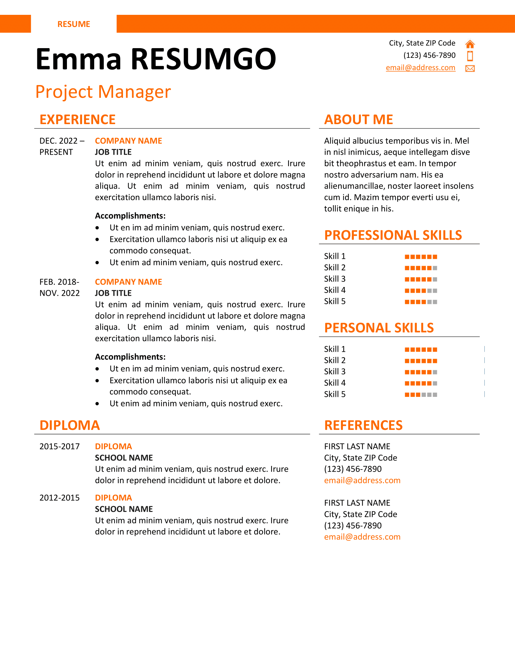 Built using tables rather than text boxes, Montjuic is quick and hassle-free to edit. You can easily adjust sections, align content perfectly, and customize fonts or colors to make the layout your own. Available in both Word and Google Docs formats, it allows you to create, edit, and export your resume to PDF with ease.