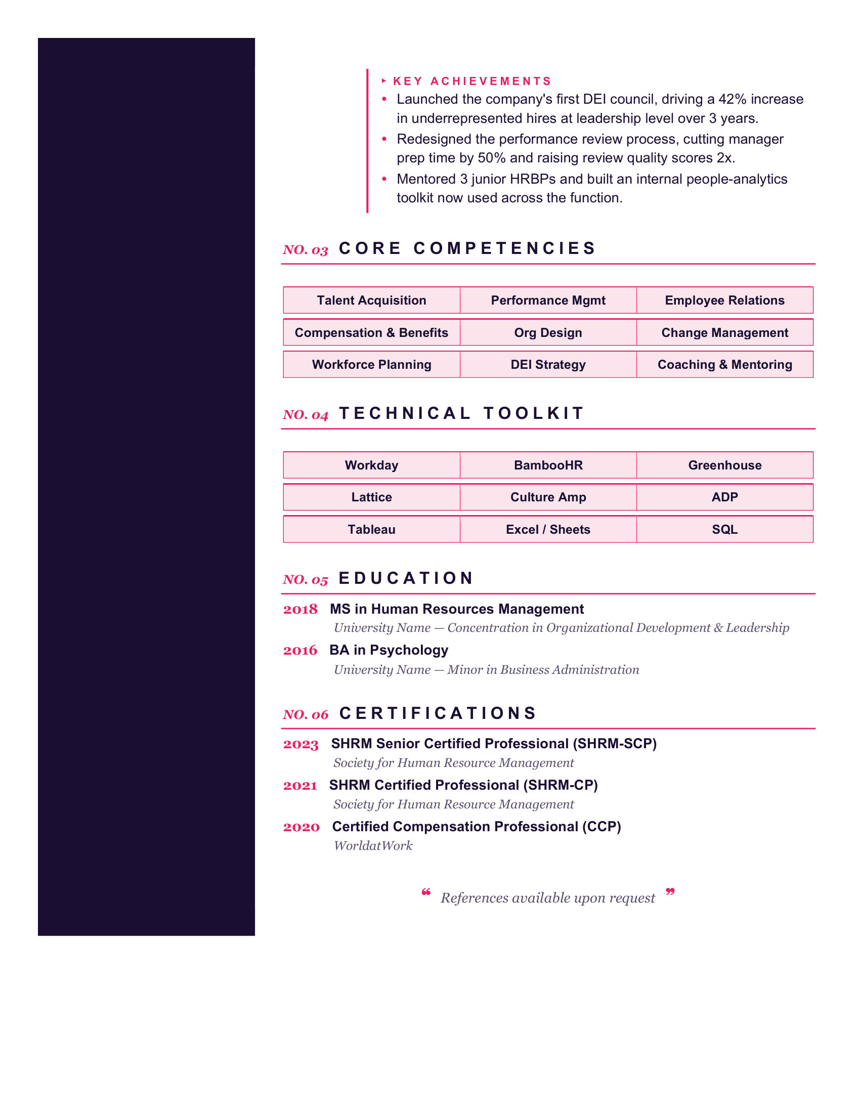 - Modern layout with a bold colored left sidebar